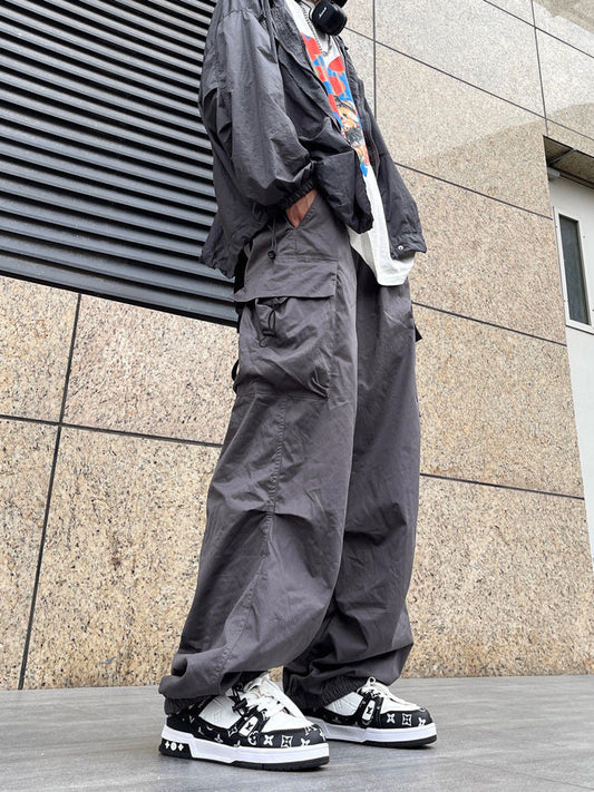 saferido boy outfits Japanese Harajuku Style American Style Wide Leg High Street Multi-Pocket Drawstring Casual Pants Loose Oversize Overalls