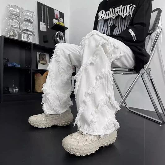 saferido Fringe Jeans Men's Loose Fit American Style Hip Hop Trousers Trendy Brand Straight Leg Trousers For Summer