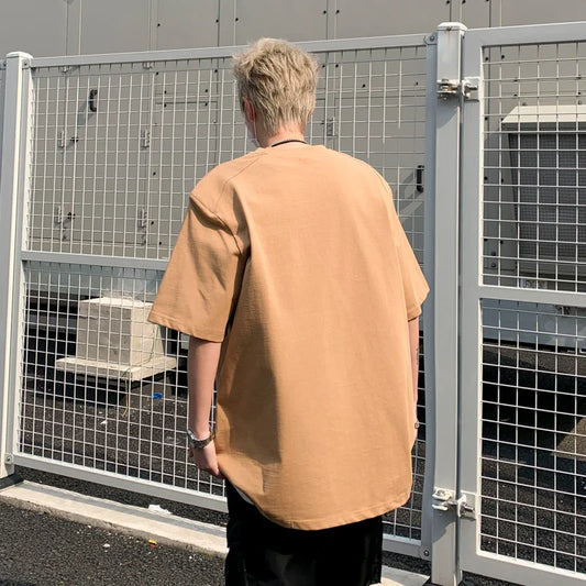 saferido Men T-shirts Solid Colors Hip Hop Comfortable Advanced Loose New American Style Simple All-match Trendy Students Summer Basic