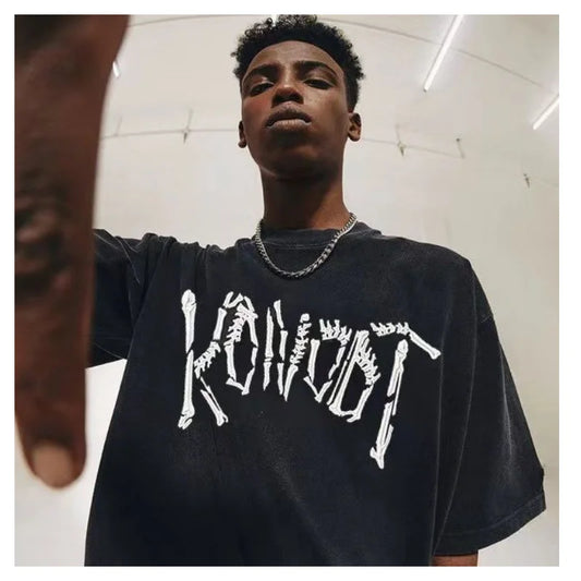 saferido Fashion Retro Skeleton Top Cotton Loose Casual Short Sleeve T-shirt Men's American Style