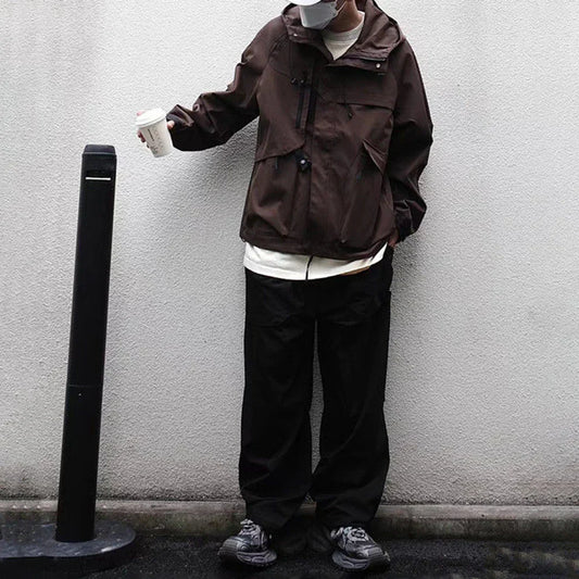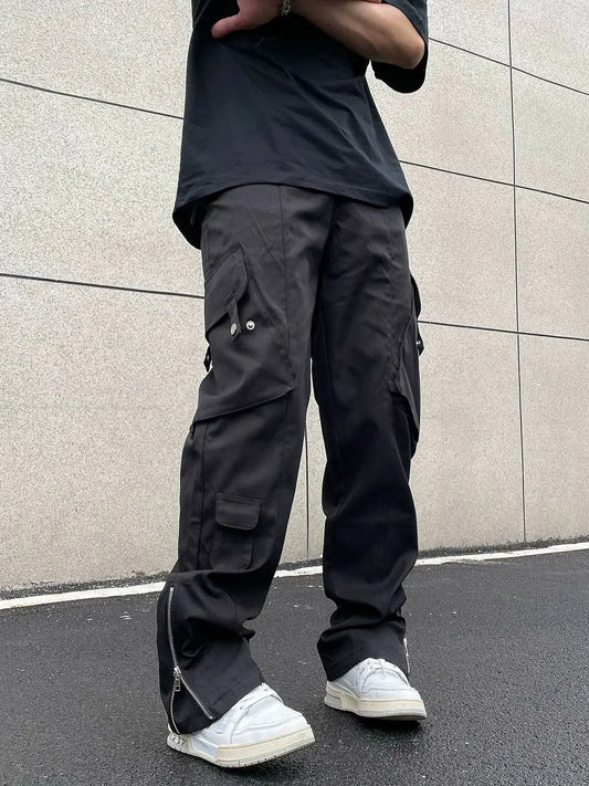 saferido Men's Loose-fit Straight-leg Casual Trousers American Style High Street Vibe Zip-up Cargo Pants Fog Wind