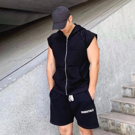 saferido Trendy Grey Half-zipper Vest Men's Sensible Design Weighty Shoulder Vest Sleeveless T-shirt American Style Casual Summer