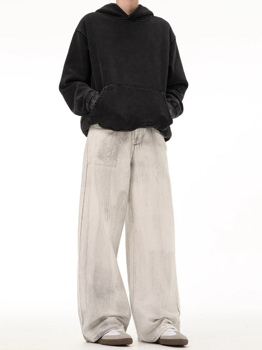National trend washed distressed drape jeans for men spring and autumn new niche retro original design pants