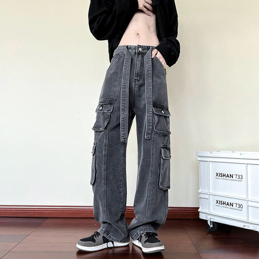 Multi-pocket American work clothes jeans Men's autumn and winter fashion brand ruffian handsome hip-hop high street loose