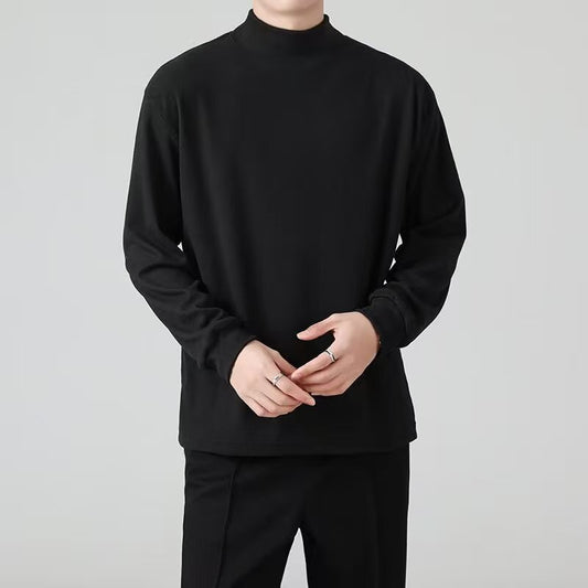 Niche Autumn Winter Versatile High Collar Design Men's Shirt Darkwear Korean Fashion Solid Color Male Tops 9A5431