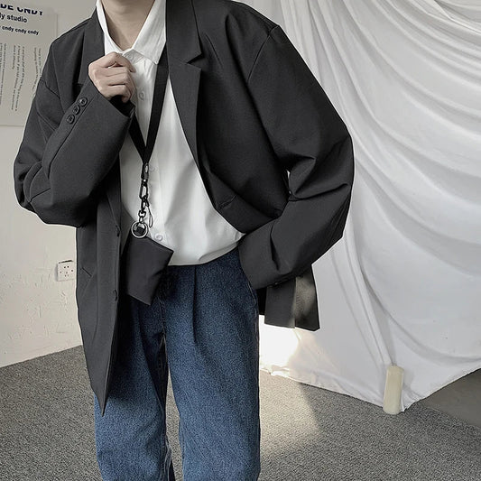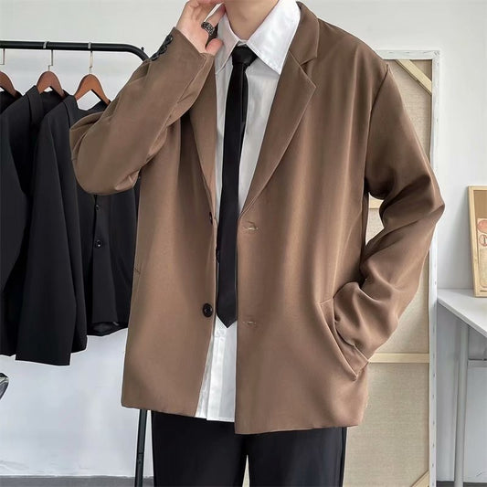 Casual Blazers Men Loose S-3XL Solid Color Single Breasted Retro Japan Style Artsy Office Notched Collar Popular Interview Suits