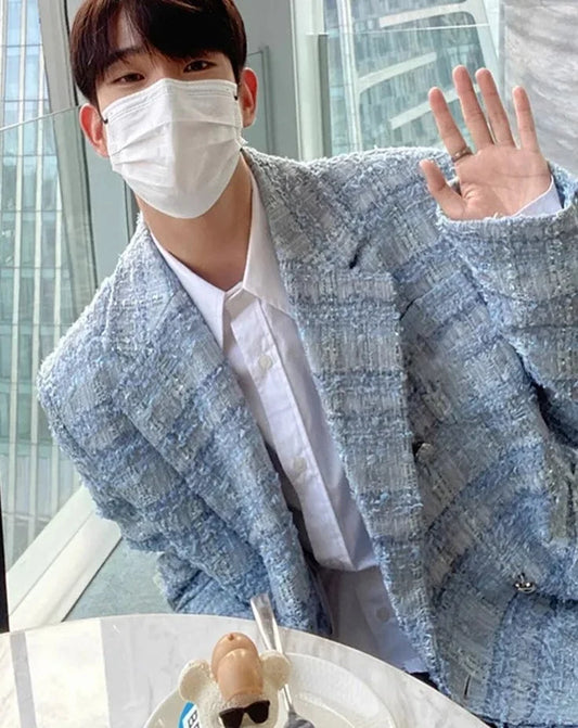 Autumn Loose Casual Colorful Blue Tweed Blazers Jacket for Men Long Sleeve Double Breasted Mens Designer Clothes