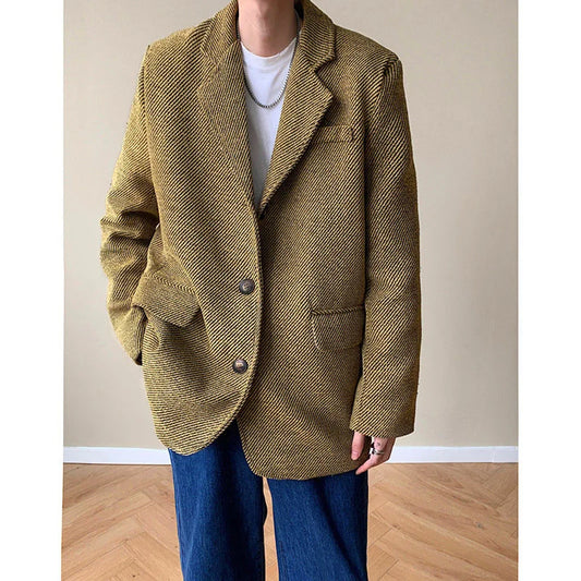saferido Men's Fashion Trend Loose Blazers Pad Shoulder High Quality Fabric Suit Jackets Formal Retro Coats Oversized Outerwear