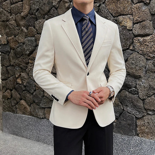 saferido Korean-style Men Casual Blazers Male One Button Suit Jackets Daily Business Streetwear All-match Simple Suit-tops