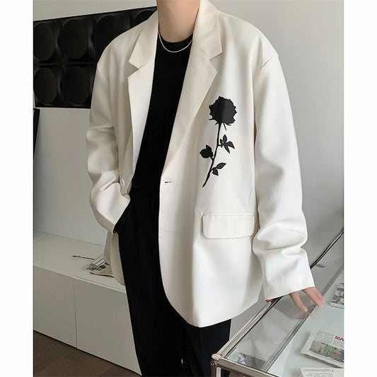 saferido Men's Printing Formal Suit Jackets Fashion Coats White/black Color Streetwear Blazers Oversized Casual Western Clothes S-XL