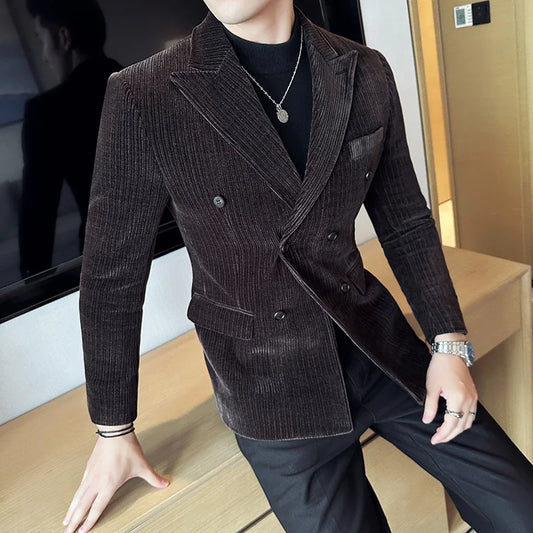 saferido Men's Corduroy Suit Jackets/Male Slim Fit Fashion High Quality Tuxedo/Man Spring Autumn Blazers Office Dress