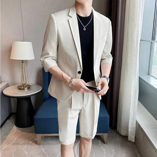 saferido Men Clothing Shorts Jacket Summer Thin High End Suit Men's Korean British Fashion Casual Mens Short Sets Sleeve Blazers M-3XL pants
