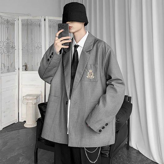 saferido Spring Men's Embroidery High Quality Suit Jackets Male School Uniform Fashion Blazers Black/grey Western-style Clothes