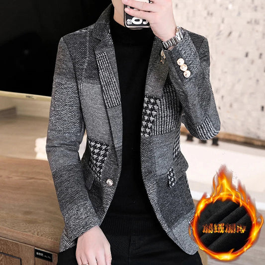 Winter New Men Suit Blazers Jackets Thickened Version Plaid Casual Suits Jackets Coats Business Formal Wear Men Slim Fit Blazers