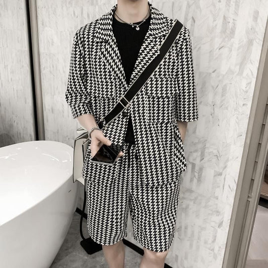 Sets Men Half Sleeve Blazers Handsome Summer Shorts Knee-length 2 Pcs Outfits Streetwear Casual Fashion Korean Clothing Popular