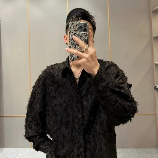 Mens Shirts Fashion Casual Baggy Spring Raw Edge Solid Color Teenagers Streetwear Korean Style Advanced Handsome Popular Daily