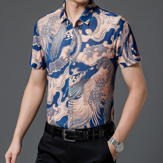 National Style Men's Shirt Fashion Personalized Print Short Sleeve Shirts Summer Summer NightClub Blouse Holiday Business Hawaii