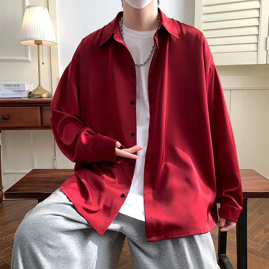 Spring Autumn Solid Color Long Sleeve Polo Shirts Man High Street Casual Loose Button Pullovers Vintage All-match Tops