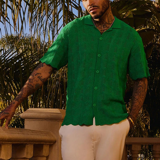 Summer Leisure Short Sleeve Button Knitted Shirts Men Casual Solid Color Embroidery Tops Men's Clothes Fashion Loose Shirt