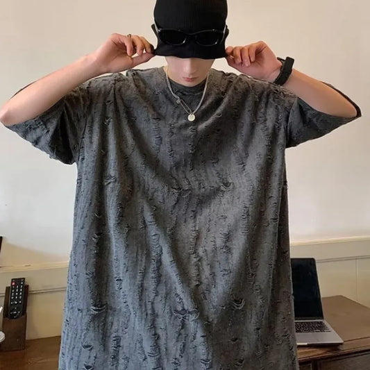 Solid T-shirts Men O-neck Three Quarter Baggy Cozy Temperament Slouchy Japanese Style Trendy Normcore Prevalent Youthful Retro