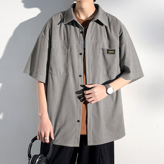 Spring Men's Corduroy short sleeve Shirts Fresh Harajuku Neutral Woman Fashion Casual Oversize Hip Hop College Shirt Coat