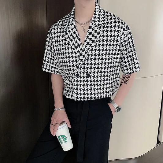 Summer Short-sleeved Shirts Men Fashion Retro Plaid Shirts Men Streetwear Korean Loose Casual Shirts Mens Dress Shirts M-2XL