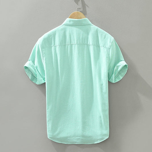 Summer New Men's Cotton and Linen Shirts Short-Sleeved T-shirt Henry Collar Casual Men's T-shirts Shirt Male Men Clothing