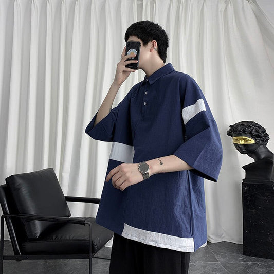 Summer New Polo Shirts Cotton Linen Breathable Men's Shirts Turn-down Collar All-match Tops Short Sleeve Harajuku Blouses