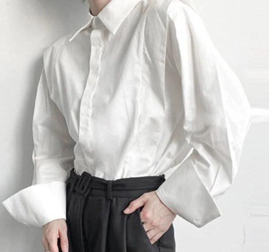 Tops American Style New Men Fashion Solid Ribbon Blouse Male Stitching Butterfly Lace Long Sleeve Thin Shirts S-5XL