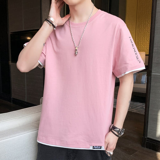 T Shirt Men Fashion Clothing Men Casual Pink Tshirts Streetwear Tops Men Pullover Short Sleeve Casual Shirts