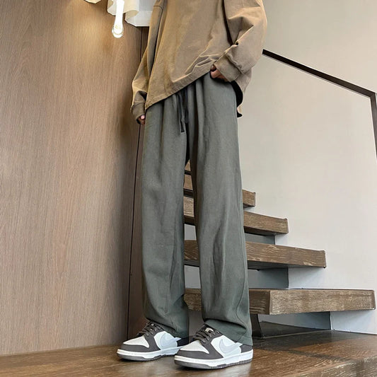 saferido Spring Summer Fashion Casual Pans For Men Streetwear Solid Color Cargo Pants Elastic Waist Wide Leg Men's Joggers