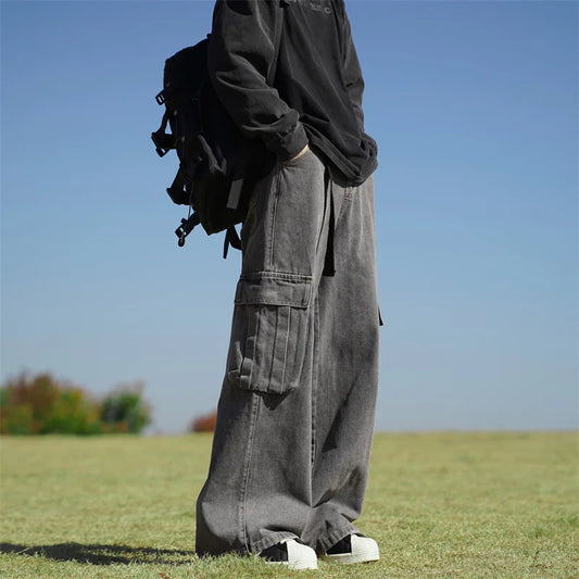 saferido Vintage Y2K Pockets Wide Leg Baggy Jeans Men Streetwear Straight Denim Cargo Pants Solid Hip Hop Harajuku Washed Pantalones