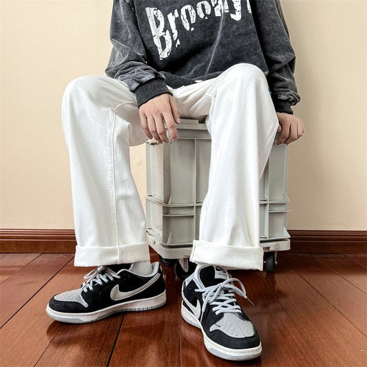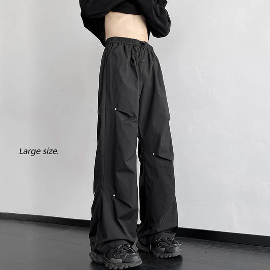 Spring Straight Casual Pants For Men Wide Leg Solid Color Cargo Pants Elastic Waist Harajuku Men's Pants