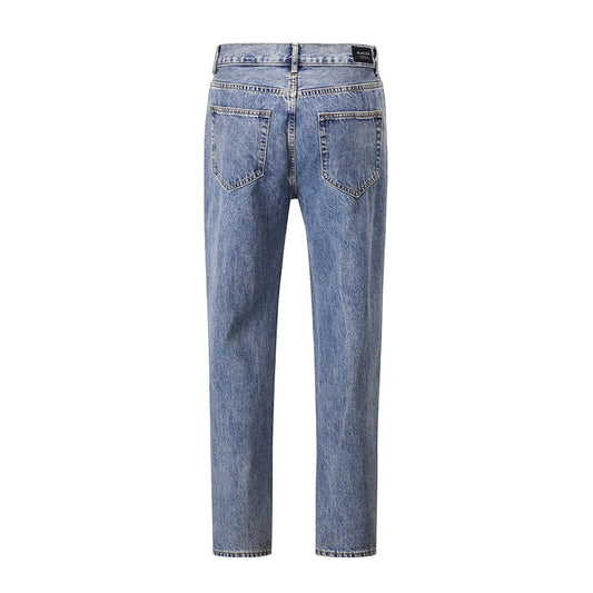 Y2K Distressed Cut Hole Washed Blue Jeans for Men Straight Baggy Casual Denim Trousers Oversized Streetwear Loose Cargo Pants