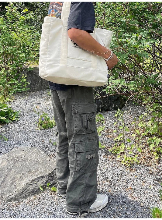 Cargo Pants Multi-pockets Tooling Pant Harajuku Men's Vintage Loose Wide Leg Pants Streetwear Casual Hip-hop Mopping Trousers