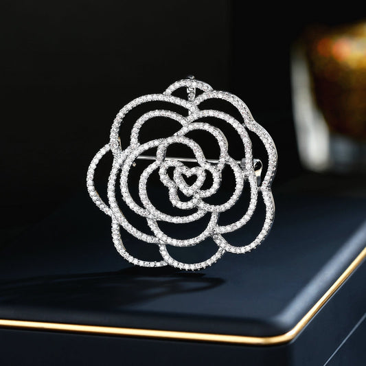 2025 Winter new coat coat scarf accessories corsage niche design zircon inlaid hollow camellia brooch