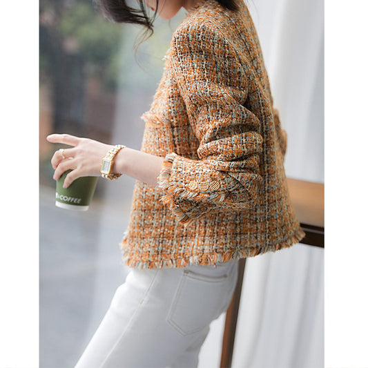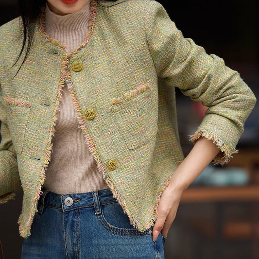 2025 Rough tweed high-end small fragrant short coat green spring new women's temperament versatile top