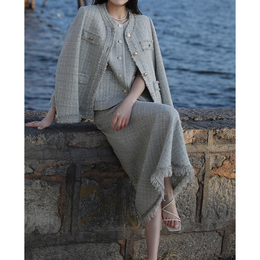 2025 Heavy industry weaving, wool small fragrant style suit, high-end coat, skirt, long skirt spring and autumn new women's clothing