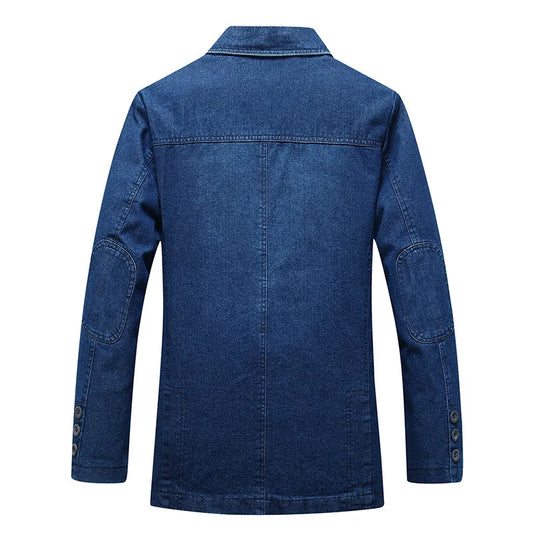 Mens Denim Blazer Men Fashion Cotton Vintage Suit Outerwear Male Blue Coat Denim Jacket Men Slim Fit Jeans Denim Blazers Top 4Xl