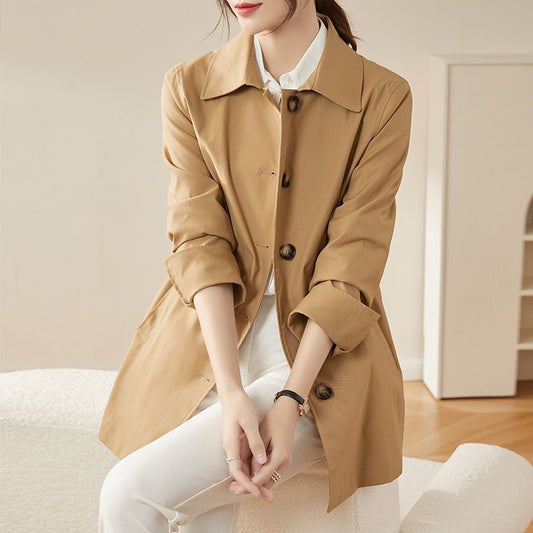 Mom trench coat women's spring and autumn new Korean version waist loose and thin casual fashion small coat