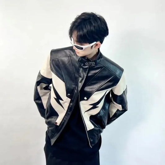 Motorcycle Jacket Men Women New High Street Vintage American Patchwork Leather Racing Jackets Loose Casual Handsome Coats Unisex