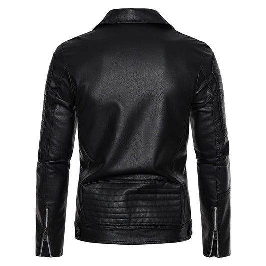 Mens Motorcycle Leather Jacket Slim Fit Short-Coat Lapel PU Jackets Autumn New Zipper Stand Windproof Leather Coat Mens Clothing