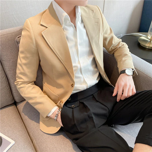 saferido High Quality Korean Slim Fit Blazer Jackets Men Clothing Simple Two Buttons Business Formal Wear Casual Suit Coats 3XL-S