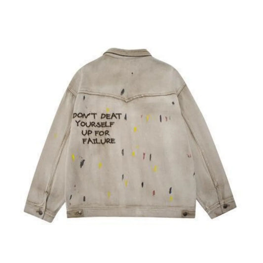 saferido Hip Hop Men's Washable Old Denim Clothes Vintage Embroidered Denim Jackets Speckled Oversize Loose Coat Men's Spring and Autumn
