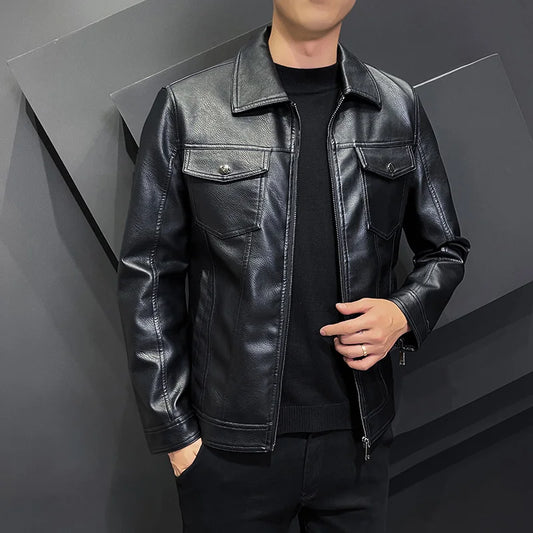 saferido Spring Leather Jacket Men Motorcycle Jacket Slim Fit Male Autumn Faux Leather Coat Men's Casual Zipper Windbreaker Clothes