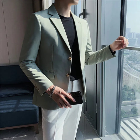 saferido New Suit Jacket Mens Fashion Tops Slim Handsome Spring Autumn Male Suits Coat British Casual Men White Blazer Jacket Solid