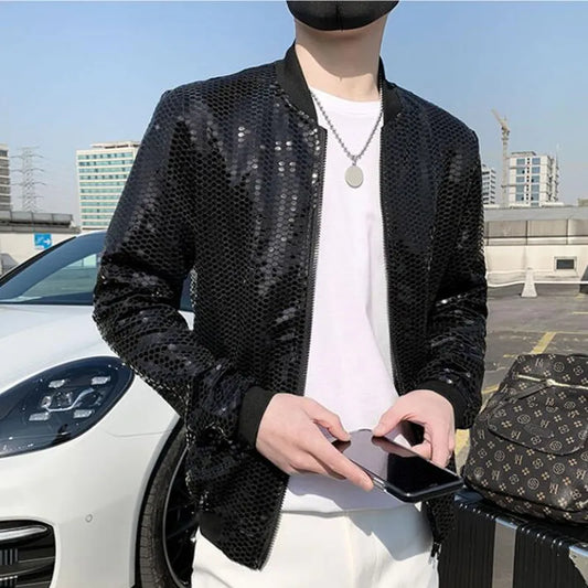 saferido Men's Spring High-End Sequins Leisure Jackets/Male Slim Fit Thin Coat/Man Summer Prevent Bask In Clothes Plus Size S-5XL