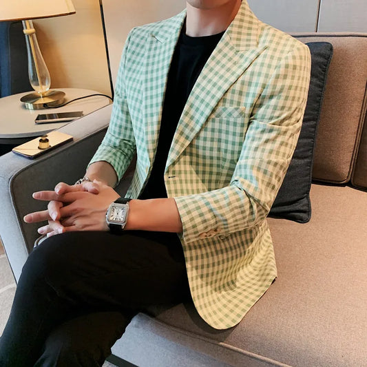 saferido Male Casual Plaid Blazers New Design Korean Version Slim-Fit Trend Business Coat High Quality Selling Fashion Suit Men 4XL