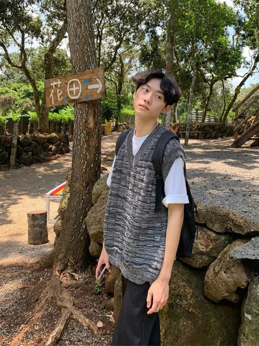 saferido Man Clothes Waistcoat Vest Knitted Sweaters for Men Sleeveless V Neck Pink Japanese Harajuku Fashion Korean Autumn Wool Fun