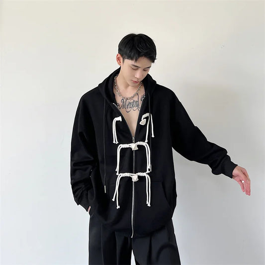 saferido Korean women Spring Autumn Color Chinese Style Hooded Sweatshirt Men's Loose Trendy Casual Zipper Coat Male Hoodies